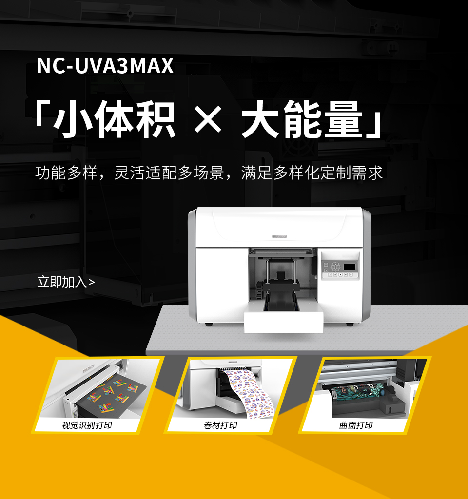 采用3個精度高、使用壽命長的打印頭,4色+白+光油,色彩艷麗,浮雕感強。
